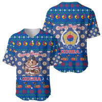 Korea Christmas Baseball Jersey with Bear in Hanbok National Emblem and Traditional Boat Pattern Design