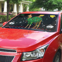 Kuwait Christmas Auto Sun Shade with Camel in Festive Ornaments Snowflakes and Green Red