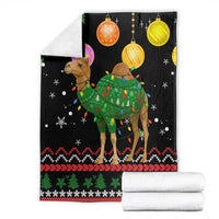 Kuwait Christmas Blanket with Camel in Festive Ornaments Snowflakes and Green Red TS04