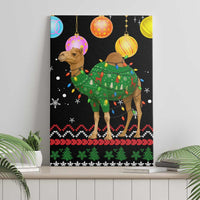 Kuwait Christmas Canvas Wall Art with Camel in Festive Ornaments Snowflakes and Green Red TS04
