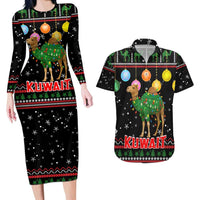 Kuwait Christmas Couples Matching Long Sleeve Bodycon Dress and Hawaiian Shirt with Camel in Festive Ornaments Snowflakes and Green Red TS04