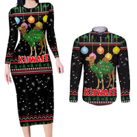 Kuwait Christmas Couples Matching Long Sleeve Bodycon Dress and Long Sleeve Button Shirt with Camel in Festive Ornaments Snowflakes and Green Red TS04