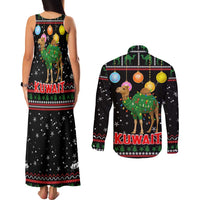 Kuwait Christmas Couples Matching Tank Maxi Dress and Long Sleeve Button Shirt with Camel in Festive Ornaments Snowflakes and Green Red TS04