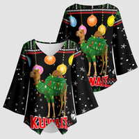 Add a chic touch to your wardrobe with the Kuwait Christmas Kimono Sleeve Blouse with Camel in Festive Ornaments Snowflakes and Green Red from Wonder Print Shop. Designed for versatility, this V-neck blouse features flowing kimono-style sleeves and a relaxed fit — perfect for both casual and dressy occasions. Crafted with premium polyester fabric, it offers a soft, lightweight feel for all-day comfort.