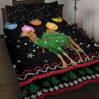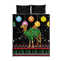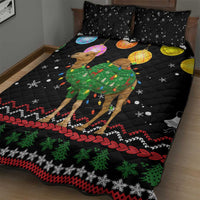 Kuwait Christmas Quilt Bed Set with Camel in Festive Ornaments Snowflakes and Green Red TS04