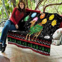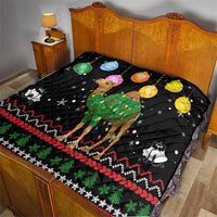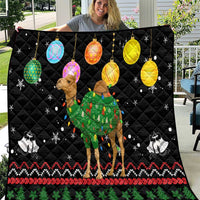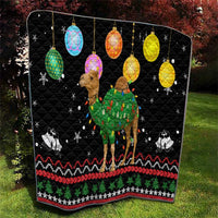 Kuwait Christmas Quilt with Camel in Festive Ornaments Snowflakes and Green Red