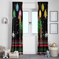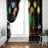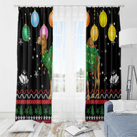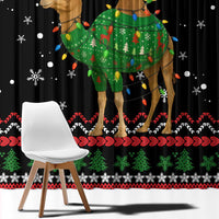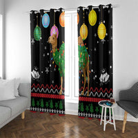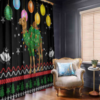 Kuwait Christmas Window Curtain with Camel in Festive Ornaments Snowflakes and Green Red