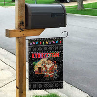 Kyrgyzstan Christmas Garden Flag with Santa Decorating Yurt Colorful Lights Snowflakes and National