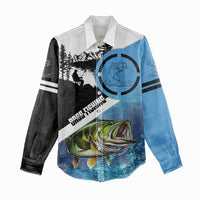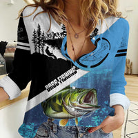 Largemouth Bass Fishing Underwater Graphic Women Casual Shirt Mountain Silhouette and Custom Name Design TS04
