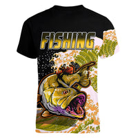 Largemouth Bass Fishing Yellow Women V Neck T Shirt LT9