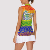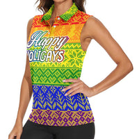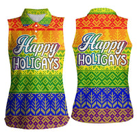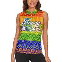 LGBT Gay Pride Happy Holigays Christmas Women Sleeveless Polo Shirt Xmas Holiday Patterns