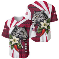 Liberia Baseball Jersey with Leopard Head, White Lily, and Red Chili Tribal Design TS04