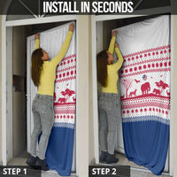 Transform your home with the Liberia Christmas Door Cover with Red Wildlife Silhouettes and White Blue Holiday by Wonder Print Shop. Don’t miss your chance to bring vibrant design and quality craftsmanship to your doorway.