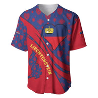 Liechtenstein Baseball Jersey with Red Blue Heart Design and Royal Coat of Arms Pattern