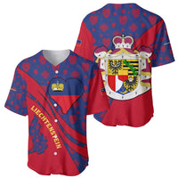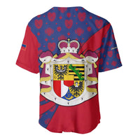 Liechtenstein Baseball Jersey with Red Blue Heart Design and Royal Coat of Arms Pattern TS04