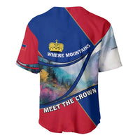 Liechtenstein Baseball Jersey with Red Blue Mountain Landscape Design and Crown Emblem TS04