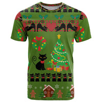 Love Black Cat Christmas T Shirt Xmas Holiday Patterns TS04