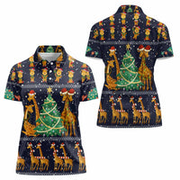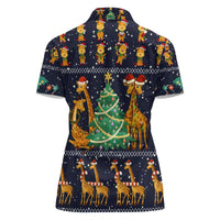 Love Giraffe Christmas Women Polo Shirt Xmas Holiday Patterns
