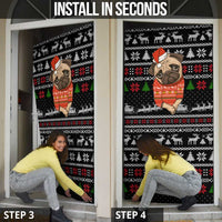 Lovely Pug Dog Christmas Door Cover Xmas Holiday Patterns TS04
