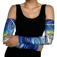 Mahi Mahi and Tuna Fish Arm Sleeves Fishing Ocean Water Background and Nautical Compass Elements