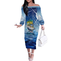 Mahi Mahi and Tuna Fish Family Matching Off The Shoulder Long Sleeve Dress and Hawaiian Shirt Fishing Ocean Water Background and Nautical Compass Elements TS04