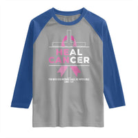 Male Breast Cancer Raglan Shirt He Can Heal Cancer Christian Pink Ribbon