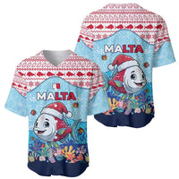 Malta Christmas Baseball Jersey with Santa Fish Malta Flag Coral Reef and Red Blue Festive Pattern Design