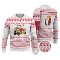 Malta Christmas Ugly Christmas Sweater with Santa Driving Vintage Bus Malta Flag and Red White Festive Pattern Design
