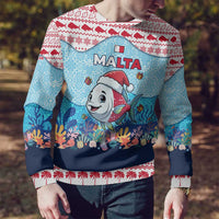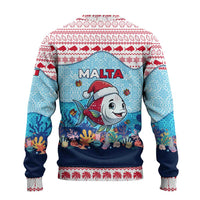 Malta Christmas Ugly Christmas Sweater with Santa Fish Malta Flag Coral Reef and Red Blue Festive Pattern Design