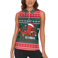 Merry Octomas Christmas Women Sleeveless Polo Shirt Xmas Holiday Patterns