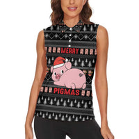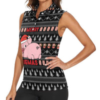 Merry Pigmas Christmas Women Sleeveless Polo Shirt Xmas Holiday Patterns