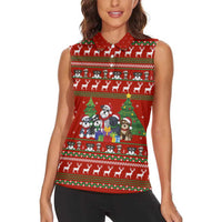 Miniature Schnauzer Family Snow Christmas Women Sleeveless Polo Shirt Xmas Holiday Patterns TS04