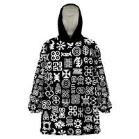 Mix Adinkra Wearable Blanket Hoodie Black Pattern