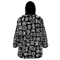 Mix Adinkra Wearable Blanket Hoodie Black Pattern DT02