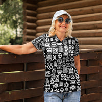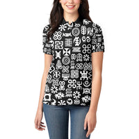 Mix Adinkra Women Polo Shirt Black Pattern DT02