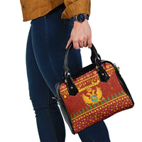 Montenegro Christmas Shoulder Handbag with Red-Gold Theme, Double-Headed Eagle, and Santa Motif
