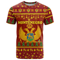 Montenegro Christmas T Shirt with Red-Gold Theme, Double-Headed Eagle, and Santa Motif