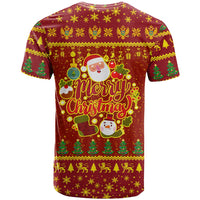 Montenegro Christmas T Shirt with Red-Gold Theme, Double-Headed Eagle, and Santa Motif TS04