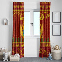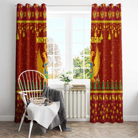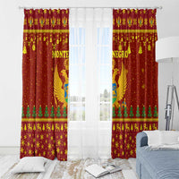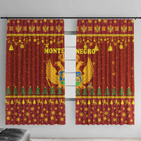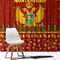 Montenegro Christmas Window Curtain with Red-Gold Theme, Double-Headed Eagle, and Santa Motif