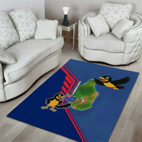 Montserrat Area Rug with Cartoon Bird and Island Map Blue Red Stripe Design TS04