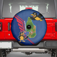 Montserrat Spare Tire Cover with Cartoon Bird and Island Map Blue Red Stripe Design TS04
