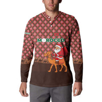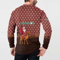 Morocco Christmas Button Sweatshirt with Santa Claus Camel Caravan Desert Scene and Red Pattern Design TS04