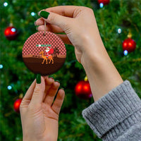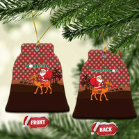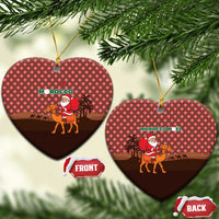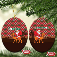 Morocco Christmas Ceramic Ornament with Santa Claus Camel Caravan Desert Scene and Red Pattern Design