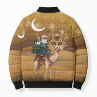 Grab your Morocco Christmas in Sahara Bomber Puffer Jacket Black Santa Riding Camel by Wonder Print Shop today and experience comfort, style, and versatility in one sleek jacket.