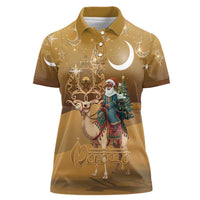 Morocco Christmas in Sahara Women Polo Shirt Black Santa Riding Camel
