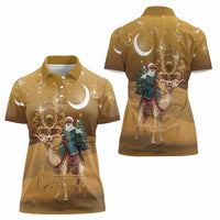 Morocco Christmas in Sahara Women Polo Shirt Black Santa Riding Camel LT15