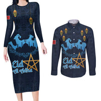 Morocco Happy Eid Mubarak Couples Matching Long Sleeve Bodycon Dress and Long Sleeve Button Shirt Eid Al-Adha