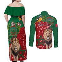 Morocco Independence Day Couples Matching Off Shoulder Maxi Dress and Long Sleeve Button Shirts Barbary Lion With Moussier Redstart