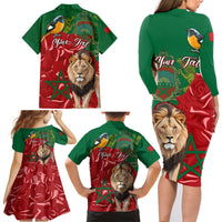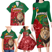 Morocco Independence Day Family Matching Long Sleeve Bodycon Dress and Hawaiian Shirt Barbary Lion With Moussier Redstart
