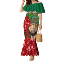 Morocco Independence Day Family Matching Mermaid Dress and Hawaiian Shirt Barbary Lion With Moussier Redstart